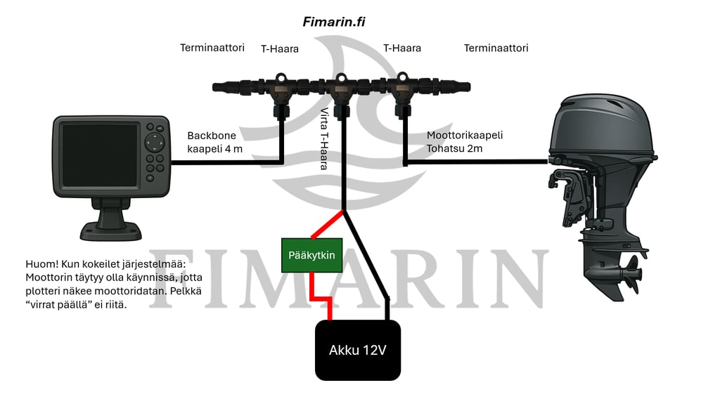 Haluatko seurata Tohatsu-perämoottorisi tietoja kaikuluotaimen tai monitoiminäytön kautta? Fimarin valmis MC-BP-TO NMEA 2000 -kytkentäsarja tekee tästä yksinkertaista ja turvallista. Tässä blogikirjoituksessa käymme läpi, miten kytkentä toteutetaan – vaihe vaiheelta.
